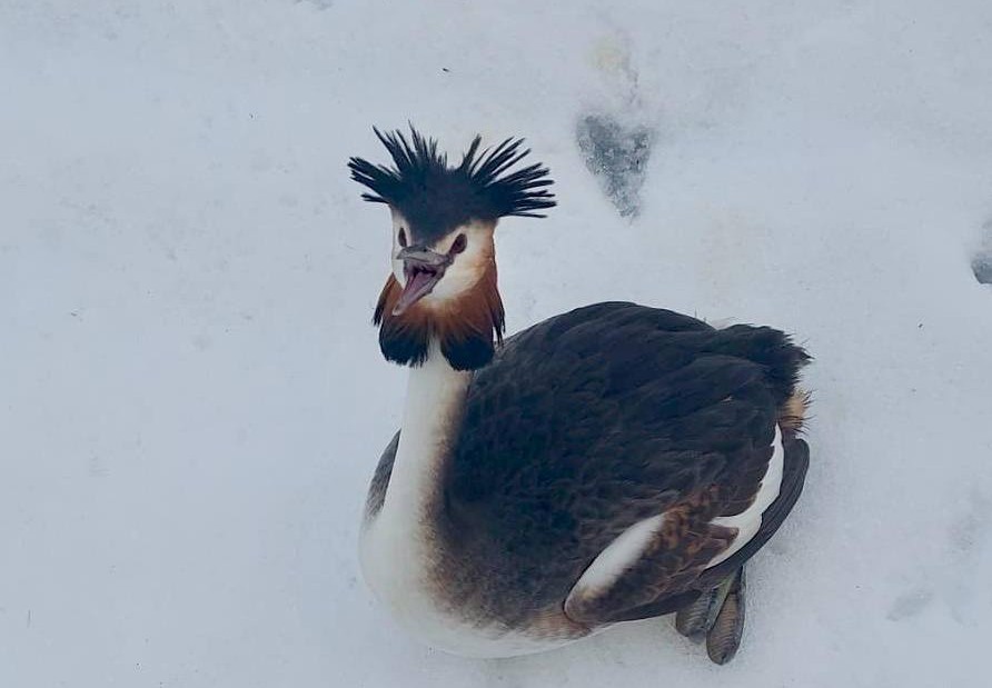 Bucharest police rescue great crested grebe that fell into the snow