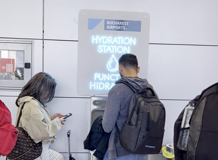 Bucharest airports install 10 free drinking water stations for passengers.